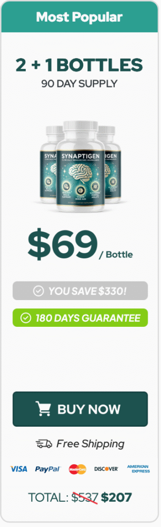 To protect your health and ensure you receive the genuine, clinically researched Synaptigen, we strongly recommend purchasing only through the Official Website. This is the only way to guarantee the authentic formula, manufactured in certified facilities and backed by a 180-day money-back guarantee.